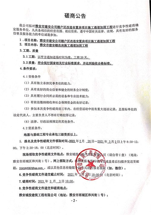 城投建工公司雅安市建安公司棚戶區(qū)改造安置房項(xiàng)目施工通道加固工程競爭性磋商公告