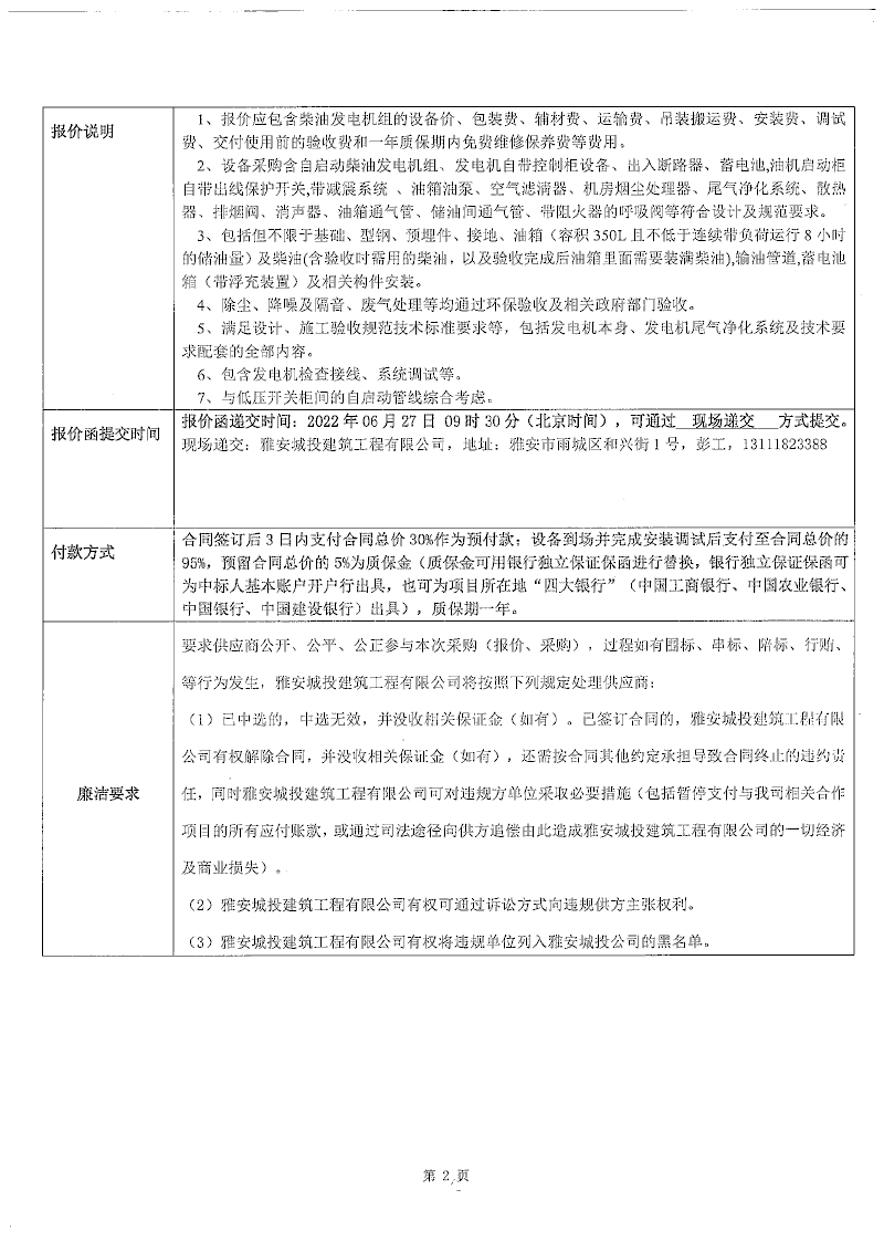 漢源縣城市智慧停車場及智慧充電樁項目一期漢源縣城人民銀行大型綜合樓停車樓建設(shè)項目500kw柴油發(fā)電機組設(shè)備采購競價公告