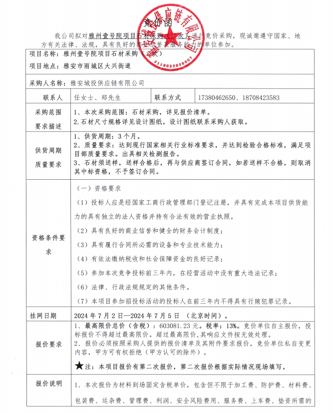 雅州壹號(hào)院項(xiàng)目石材采購(二次)競(jìng)價(jià)公告